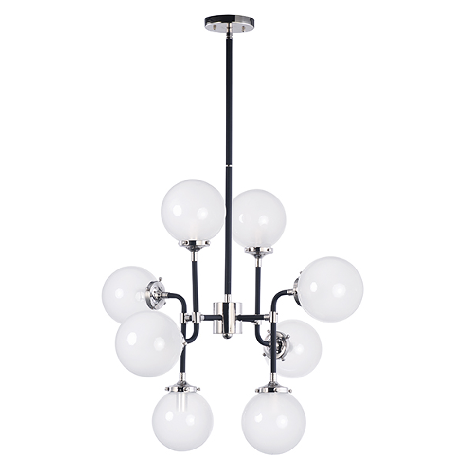 Colección Atom de Maxim Lighting nos transporta al clásico estilo industrial que está en tendencia, las esferas en blanco opalino nos aportan luz eficiente pero tenue para una atmósfera perfecta. Acabados en Níquel pulido negro, material acero y vidrio opalino, dimeable.